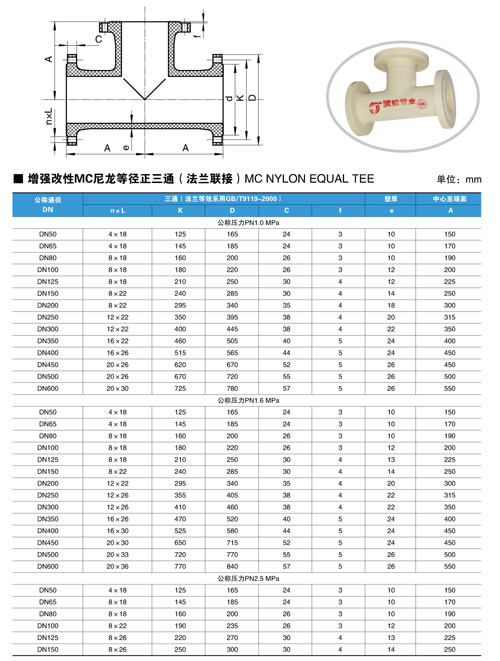 增強改性MC尼龍等徑正三通(法蘭聯(lián)接)