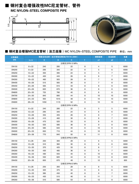 鋼襯復合增強MC尼龍管材(法蘭聯接)